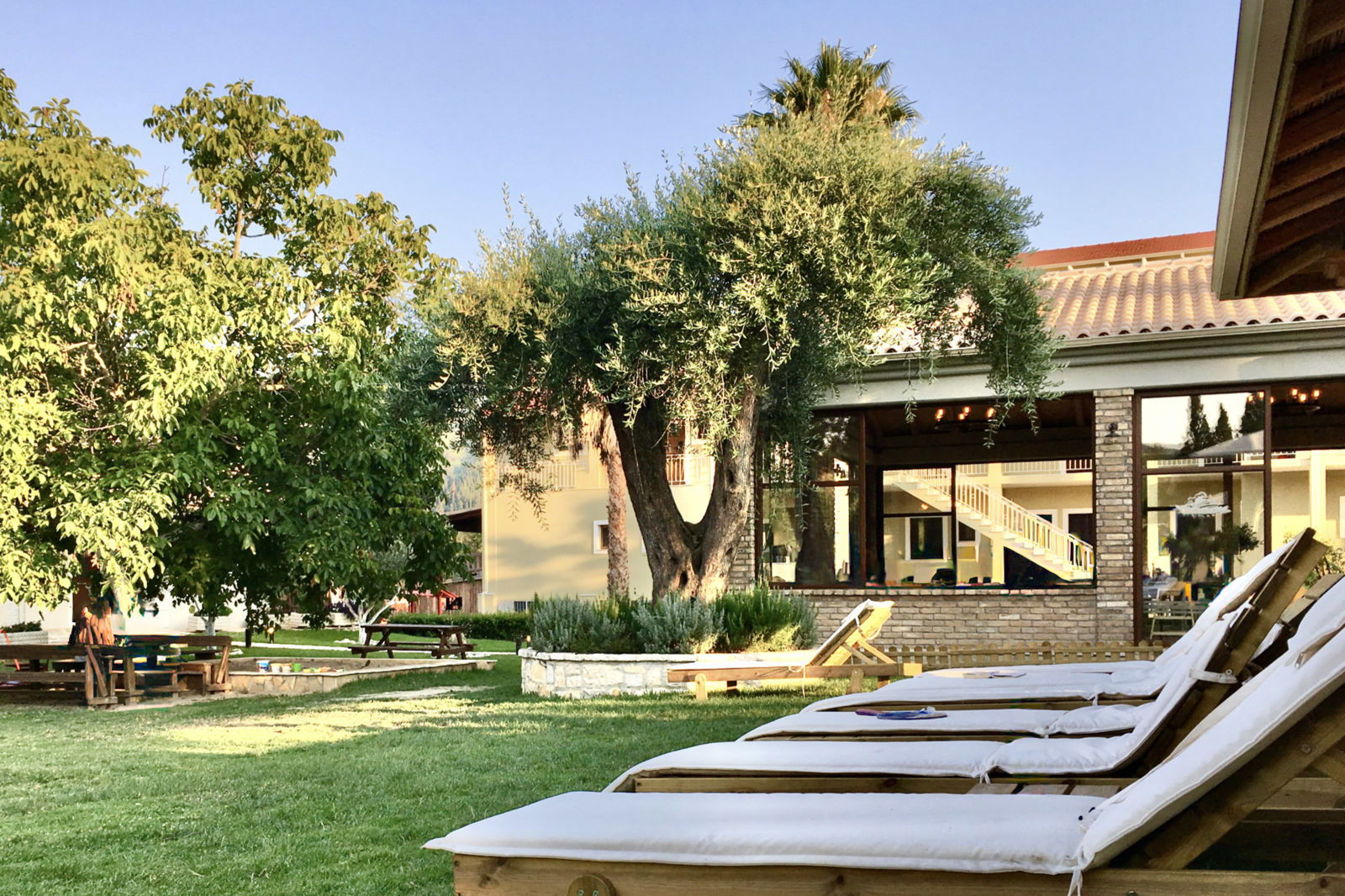Reisperiode: 260620 • 7 nachtenVertrek: AMS Verzorging: LogiesKamer: Studio Standaard Beschrijving Honigtal Farmland Tussen heuvels, dieren en de zon Tussen de groene heuvels van Agios Georgios ligt Honigtal Farmland, een plek waar alles draait om rust, natuur en samen zijn. De comfortabele kamers met veel hout en natuurlijke tinten kijken uit op het mooie groene landschap van Corfu. Op de kleinschalige boerderij met een warm familiegevoel voel je je helemaal thuis.'s Avonds schuif je aan in het Mediterraanse restaurant, waar met verse ingrediënten van het land wordt gekookt. Geniet van lekker eten in combinatie met de zonsondergang. Of je nu met z'n tweeën komt of met het hele gezin, bij Honigtal Farmland voelt iedereen zich welkom. De baai van Agios Georgios In de prachtige baai onderaan de berg ligt Agios Georgios. Op het brede zandstrand, met uitzicht over de kristalheldere Ionische Zee, ontspan je optimaal. Op het strand vind je fijne ligbedden en een paar gezellige taverna's voor een lunch met je voeten in het zand. Wie liever het water op gaat, huurt een bootje en vaart langs de kust, waar de zee alle tinten blauw lijkt te hebben. Aan het einde van de dag bewonder je hier de prachtige zonsondergang en geniet je van het sfeervolle centrumpje. Rondje Corfu in je eigen ritme Vanaf het rustige Agios Georgios rijd je met je huurauto zo het groene hart van Corfu in. Slingerende wegen leiden je langs olijfgaarden, prachtige baaien en charmante dorpjes. Rijd naar Corfu-stad, met haar Venetiaanse sfeer, smalle steegjes en levendige pleinen. Net buiten de stad ligt Kanoni, waar je vliegtuigen laag ziet landen boven het witte klooster van Vlacherna; een uitzicht om even stil van te worden. Stop ook in Agios Gordios, een gezellig dorpje met een van de mooiste stranden van het eiland. Of rijd noordwaarts naar Sidari, waar de rotsformaties van het Canal d'Amour wachten op een frisse duik. Ligging Honigtal Farmland Op 300 meter van restaurants Op 300 meter van winkels/supermarkt Op 500 meter van centrum Agios Georgios Op 500 meter van het strand Op 35 kilometer van de luchthaven Kamers