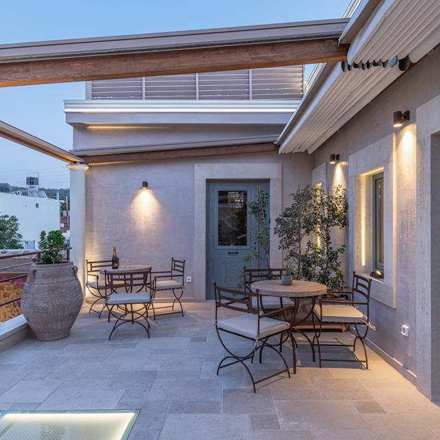 <p>Ja! Ik ben in de buurt. Volgens de verwijzing op het opvallende bordje met een prachtig logo, moet het mythische Inotropes Boutique Suites in dit straatje liggen. Vrienden van mij waren laaiend enthousiast en raakten niet uitgesproken over dit bijzondere adresje in Archanes op Kreta. Het is een mooi traditioneel dorp waar de tijd in een heel ander tempo stroomt, met traditionele steegjes en veel gekleurde huizen. Ideaal voor een mooie wandeling op een zonnige dag. Terwijl ik mijn ogen uitkijk, loop ik tegen een karakteristiek oud herenhuis aan. Hier moet het zijn.</p><p>In de deuropening staat een dame en nieuwsgierig vraag ik aan haar of ik even een kijkje mag nemen. De dame blijkt de eigenaresse Efi te zijn en met een glimlach laat zij mij naar binnen. Even weet ik niet waar ik moet kijken. We staan op een binnenplaats, versierd met prachtige terracotta potten, grote olijfbomen en romantische verlichting. Ik heb het gevoel dat ik droom.</p><p>Efi vangt mijn blik en begint te vertellen over deze unieke plek. Zij kreeg dit huis van haar oma en besloot het helemaal te renoveren. Als inspiratie gebruikte zij Inotropes, een oude Griekse mythologie. Alles staat in het teken van dit prachtige verhaal. Elke kamer heeft een naam uit deze mythe gebaseerd op drie zussen, wiens namen werden geassocieerd met drie belangrijkste producten van Griekenland: wijn, olie en tarwe.</p><p>Efi geeft mij een uitgebreide rondleiding. Indrukwekkend is ook de wijnkelder waar ongekende proeverijen worden georganiseerd. Als afsluiter van de rondleiding vraagt ze, “Rood of wit, Eliza? Het is tijd om te proosten” Ik neem plaats aan een tafeltje op de binnenplaats, mijn oog valt op een ruime jacuzzi die zachtjes en uitnodigend borrelt. “Ik heb de suite Ino nog beschikbaar voor een paar nachten” zegt Efi. En dat laat ik mij geen tweede keer zeggen, ik blijf! </p>