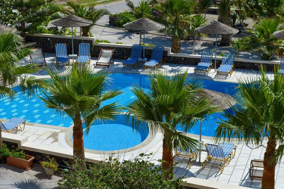 Hotel Castro is een 3-sterrenaccommodatie gelegen in Kamari in Griekenland.