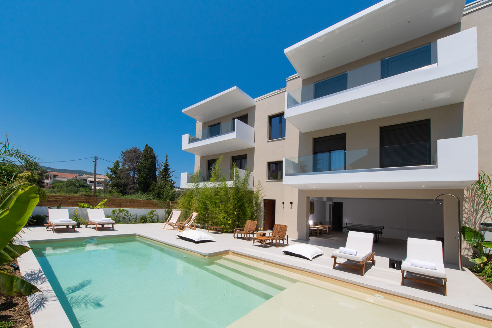 Reisperiode: 261013 • 7 nachtenVertrek: AMS Verzorging: LogiesKamer: 3-kamerappartement Luxury Beschrijving Pnoe - Feel at Home Vakantie in stijl Gelegen op het idyllische eiland Lefkas, biedt Pnoe - Feel at Home perfecte balans tussen comfort en luxe, ontworpen om je een thuis-weg-van-huis ervaring te bieden. Deze elegante accommodatie is ideaal voor reizigers die op zoek zijn naar een ontspannen en luxe vakantie in een prachtige omgeving. De appartementen zijn stijlvol ingericht en zijn van alle gemakken voorzien. Op deze plek is echt aan alles gedacht! Op een steenworp afstand van Lefkas-Stad Bij Pnoe - Feel at Home ervaar je de perfecte combinatie van Griekse gastvrijheid en moderne luxe. Vanaf je balkon geniet je van een schitterend uitzicht over de omgeving, een ideale manier om de dag te beginnen. Het verfrissende zwembad nodigt uit voor een verkoelende duik, en de comfortabele loungebedjes en zitzakken bieden de perfecte plek om urenlang van de zon te genieten. Na een ontspannen ochtend in de Griekse zon krijg je vast zin om de omgeving te verkennen. Gelukkig ligt Lefkas-Stad vlakbij, met een bruisend centrum en prachtige stranden die wachten om ontdekt te worden. Geniet in je eigen ritme Stap in je huurauto en ga op avontuur! Lefkas heeft zoveel te bieden: ontdek de charmante tavernes, gezellige cafés en unieke winkels, allemaal op een steenworp afstand van Pnoe - Feel at Home. Of geniet van een ontspannen dag op het water met een boottocht rondom Lefkas, waarbij je de turquoise baaien en afgelegen stranden verkent. Sluit je avontuur af met een diner bij een lokale taverne en proef de authentieke smaken van Griekenland. Ligging Pnoe - Feel at Home Op loopafstand van winkels/supermarkt Op 750 meter van restaurants Op 1 kilometer van centrum Lefkas-Stad Op 2 kilometer van het strand Op 23 kilometer van de luchthaven Kamers 3-kamerappartement Deluxe (1-5 personen) Formaat: ca. 80 m2 Twee slaapkamers met tweepersoonsbed Twee badkamers met douche, toilet en haardroger Uitgebreide keuken met koelkast, kookplaat, oven, magnetron en vaatwasser Nespresso koffiezetapparaat Airconditioning Smart TV Kluisje Wasmachine Privé balkon 3-kamerappartement Luxury (1-4 personen) Formaat: ca. 65 m2 Twee slaapkamers met tweepersoonsbed Badkamer met douche, toilet en haardroger Uitgebreide keuken met koelkast, kookplaat, oven, magnetron en vaatwasser Nespresso koffiezetapparaat Airconditioning Smart TV Kluisje Wasmachine Tuin/terras aan het zwembad gelegen Faciliteiten Kindvriendelijk zwembad (ondiep gedeelte) Tafeltennistafel Lift Wi-Fi Parkeergelegenheid Extra's Incheck mogelijk vanaf 14:00 uur Uitchecken voor 10:00 uur Late check-out mogelijk o.b.v. beschikbaarheid (tegen betaling) Oppasservice (tegen betaling) Huisdieren toegestaan (tegen betaling) Faciliteiten voor mindervaliden Verzorging Je verblijft bij Pnoe - Feel at Home op basis van Logies