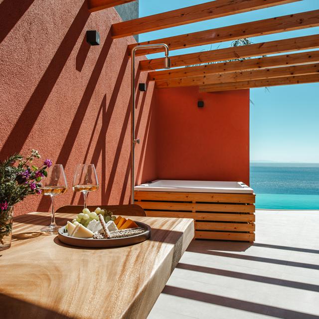 <p>Zodra ik het smalle paadje volgde dat langs de olijfbomen kronkelde, werd ik overvallen door een gevoel van tropische luxe. Voor me lag een kleine oase: vier elegante villa's met houten accenten en grote ramen, verscholen tussen het groen. Het zwembad stroomde als een kalme rivier langs de villa's, met achter elke heg een eigen stukje paradijs. Op mijn privéterras pruttelde de jacuzzi uitnodigend voor een avond onder de sterren. Het uitzicht over zee was magisch, alsof de horizon speciaal voor mij geschilderd was. Hier voelde alles licht, warm en exclusief. Hier wilde ik blijven.</p><p>River Villas ligt verscholen in het charmante Plomari op Lesbos, op slechts enkele minuten rijden van de stranden van Ammoudeli en Agios Isidoros. De vier moderne villa's combineren een tropisch design met mediterraanse elegantie. Ze zijn ruim opgezet in twee verdiepingen, met een stijlvolle slaapkamer boven en een gezellige woonruimte met keuken beneden. Elke villa beschikt over een privéjacuzzi en een terras. Het gedeelde rivierachtige zwembad slingert zich tussen de villa's door, met veel privacy dankzij groene afscheidingen. Gasten genieten van een heerlijke welkomstmand en het strand op een steenworp afstand. Na slechts vijf minuutjes lopen (of twee minuten met de auto - mocht je het helemaal rustig aan willen doen) kun je al heerlijk zwemmen in de blauwe wateren van Lesbos. </p>