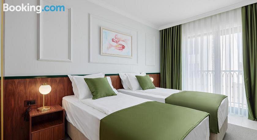Zin in een relaxte zonvakantie aan de Montenegrijnse kust? Het kleinschalige 4-sterrenhotel Diplomat in Budva is precies wat je zoekt! Hier geniet je van een rustige sfeer, stijlvolle kamers en een zonnig zwembad met ligbedden en parasols. Met het strand op slechts 850 meter afstand en een bushalte om de hoek, ligt alles wat je nodig hebt binnen handbereik. Je start je dag met een lekker ontbijtbuffet en sluit‘m af met een drankje aan de bar. Klinkt als vakantie, toch? Tijd om je koffers te pakken? Boek jouw verblijf bij Diplomat in Budva nu voordelig bij Prijsvrij!