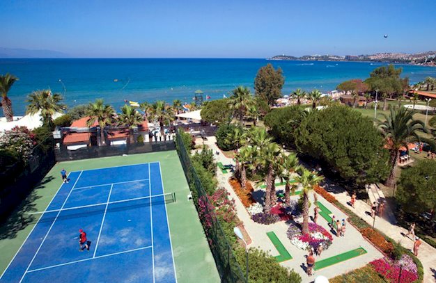 Batihan Beach Resort en Spa is het ideale familiehotel direct gelegen aan het mooie strand van Kusadasi. Het 4-sterren resort telt drie heerlijke zwembaden dus neem een duik en geniet van het frisse water. De kinderen zullen zich uitstekend vermaken in de speeltuin, miniclub of het kinderzwembad. Er zijn leuke speeltoestellen en waterglijbanen voor een hoge dosis waterpret.'s Avonds schuif je aan in het restaurant van het hotel en geniet je van een lekkere maaltijd om voldaan de dag af te sluiten! Batihan Beach Resort zorgt voor een topvakantie voor jong&oud.